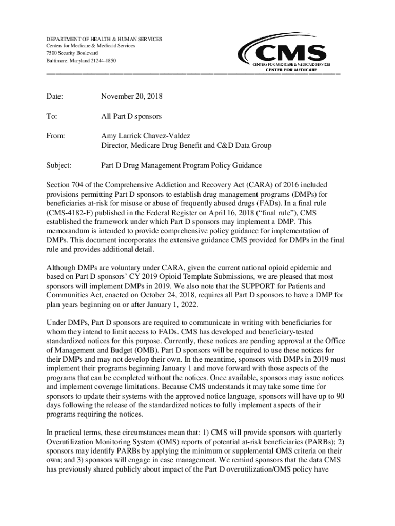 Date:November 20, 2018To:All Part D sponsorsFrom:Amy Garrick