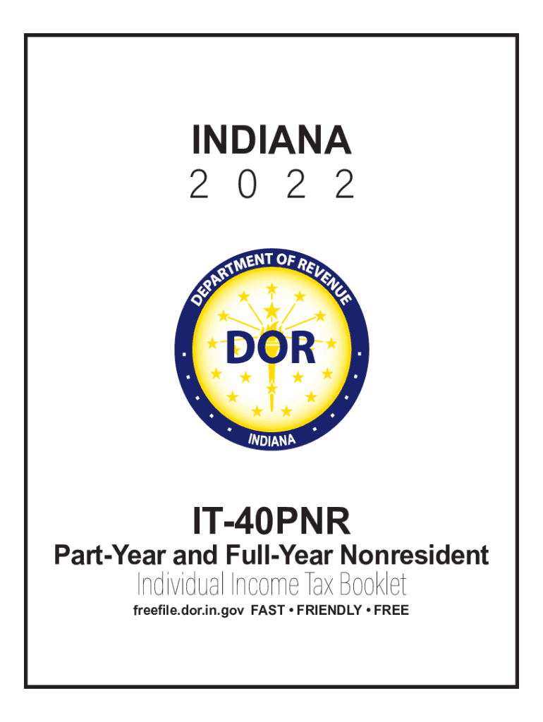 INDIANA2 0 2 2IT40PNRPartYear and Full Year NonresidentIndividual Income Tax Bookletfreefile.for.in.gov FAST FRIENDLY FREEWAY! YOU MAY QUALIFY FOR FREE ONLINE TAX FILING! More than 85 percent of Indiana
