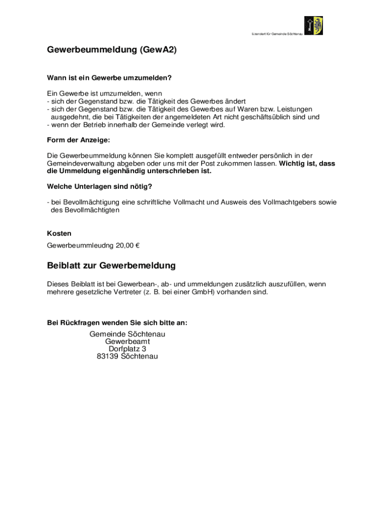 Lizenziert for Demand SchtenauGewerbeummeldung (GewA2)