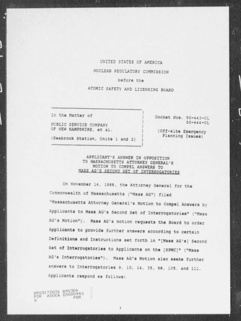 PUBLIC SERVICE COMPANY NEW HAMPSHIRE, et al.(Seabrook Station, Units 1 and 2)))))))))Docket