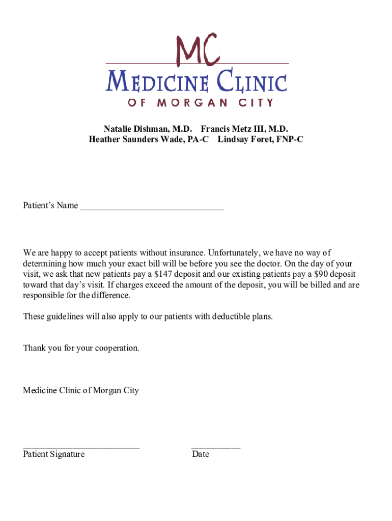 Natalie Dishpan, M.D. Francis Metz III, M.D. Heather Saunders Wade, PAC Lindsay Forest, Inpatients Name ___We are happy to accept patients without insurance. Unfortunately, we have no way of determining