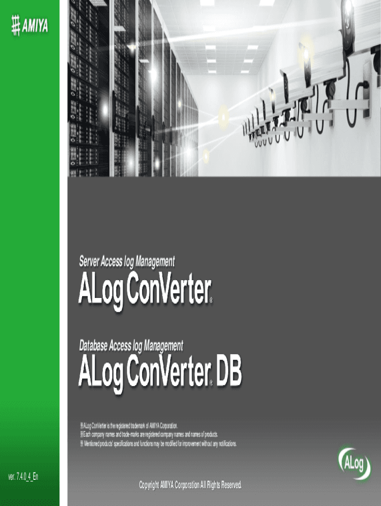 Server Access log ManagementDatabase Access log ManagementALog Converter is the registered trademark of AMIGA Corporation. Each company names and trademarks are registered company names and names