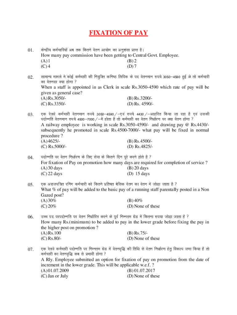 FIXATION OF PAY 01.such; deZpkfj;KSA VC rd forms OSU VK;CSX DK AUQ\'talk Izmir GSA How many pay commissions have been getting to Central Govt. Employee. (A) 1 (B) 2 (C) 4 (D) 702.lieu; keys BS asks