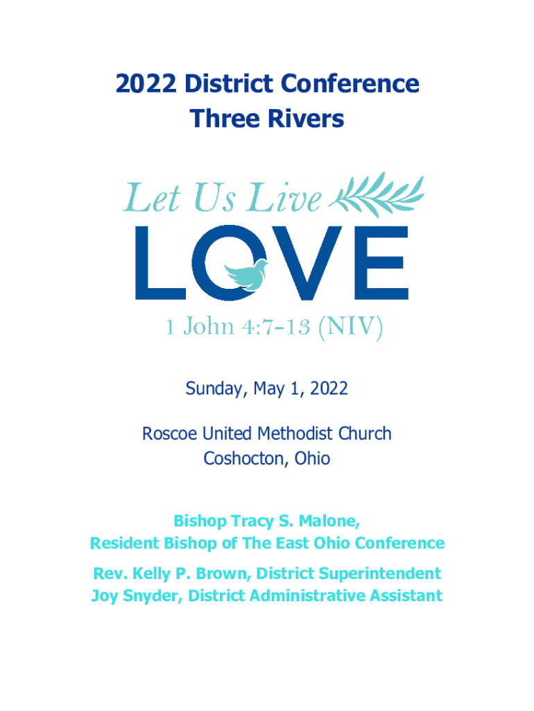 2022 District Conference Three Rivers Sunday, May 1, 2022, Roscoe United Methodist Church Concoction, Ohio Bishop Tracy S. Malone, Resident Bishop of The East Ohio Conference Rev. Kelly P. Brown,