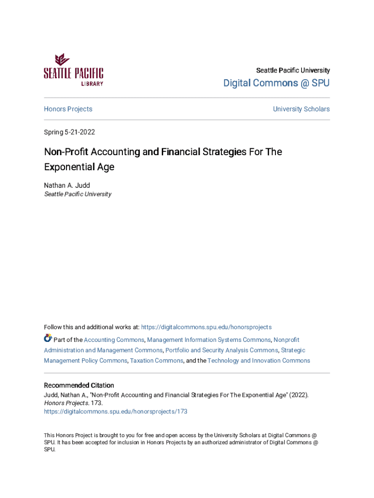 Seattle Pacific UniversityDigital Commons @ CPU Honors ProjectsUniversity ScholarsSpring 5212022NonProfit Accounting and Financial Strategies For The Exponential Age Nathan A. Judd Seattle Pacific