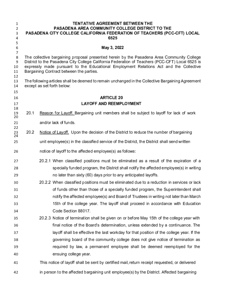 1 2 3 4 5 6 7 8 9 10 11 12 13 14 15 16 17 18 19 20 21 22 23 24 25TENTATIVE AGREEMENT BETWEEN THE PASADENA AREA COMMUNITY COLLEGE DISTRICT TO THE PASADENA CITY COLLEGE CALIFORNIA FEDERATION OF TEACHERS