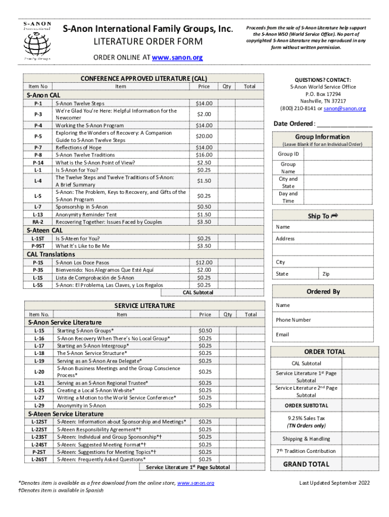 Canon International Family Groups, Inc. LITERATURE ORDER FORMProceeds from the sale of Canon Literature help support the Canon WHO (World Service Office). No part of copyrighted Canon Literature may