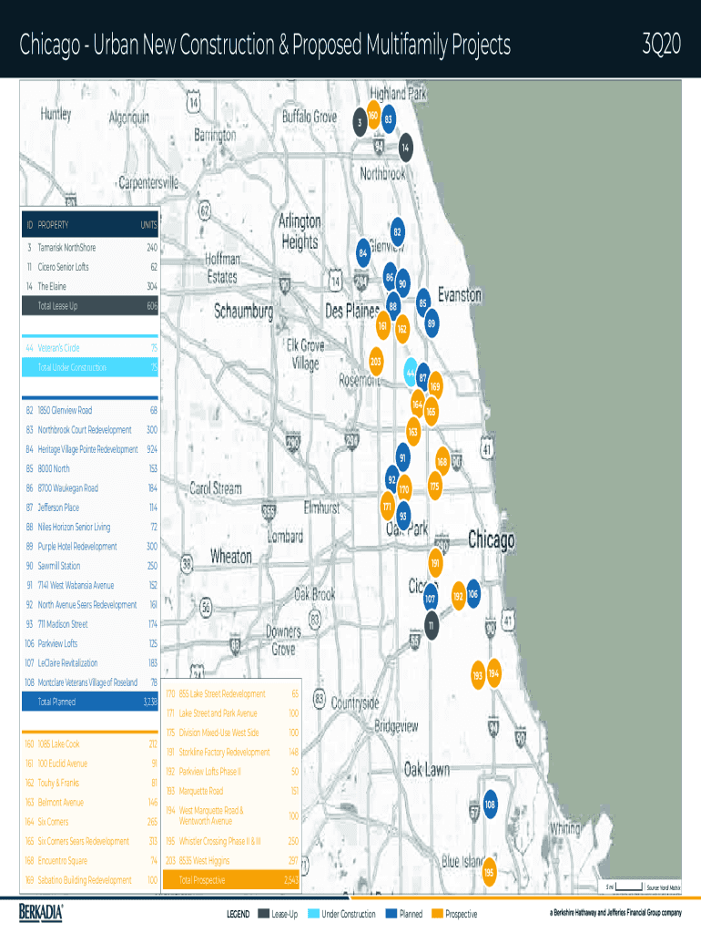 3Q20Chicago Urban New Construction & Proposed Multifamily Projects 316083 14IDPROPERTYUNITS3Tamarisk NorthShore11Cicero Senior Lofts14The Elaine304Total Lease Up60682240846286Total Under Construction82