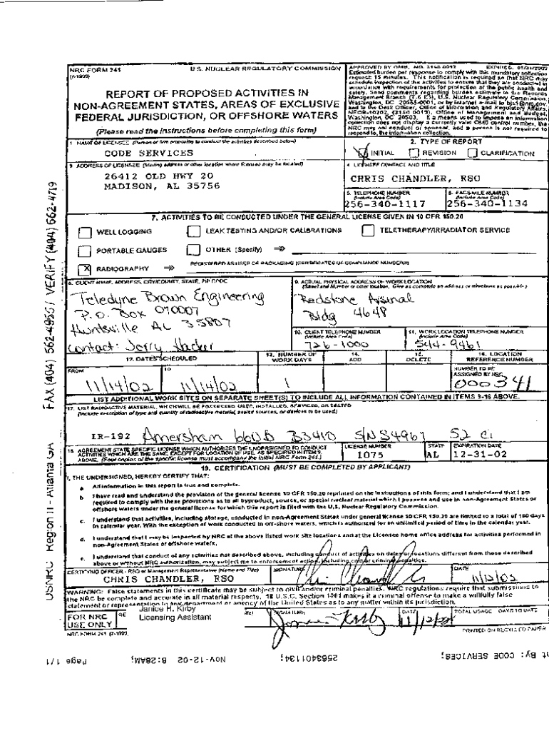 US. NIKOLAI REGULATORY COMMISSION NRC FORM 241REPORT OF PROPOSED ACTIVITIES IN