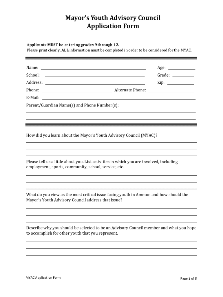 How to fill out mayors youth advisory council