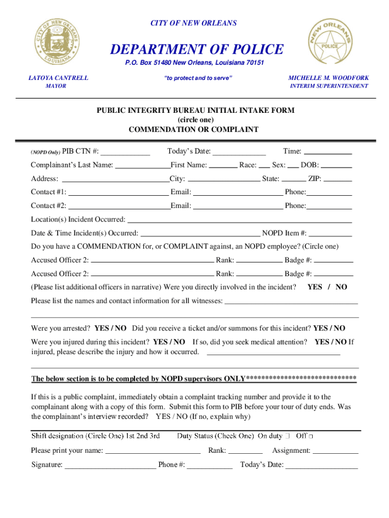 to protect and to serveLATOYA CANTRELLMICHELLE M. WOODFORKMAYORINTERIM SUPERINTENDENTPUBLIC INTEGRITY BUREAU INITIAL