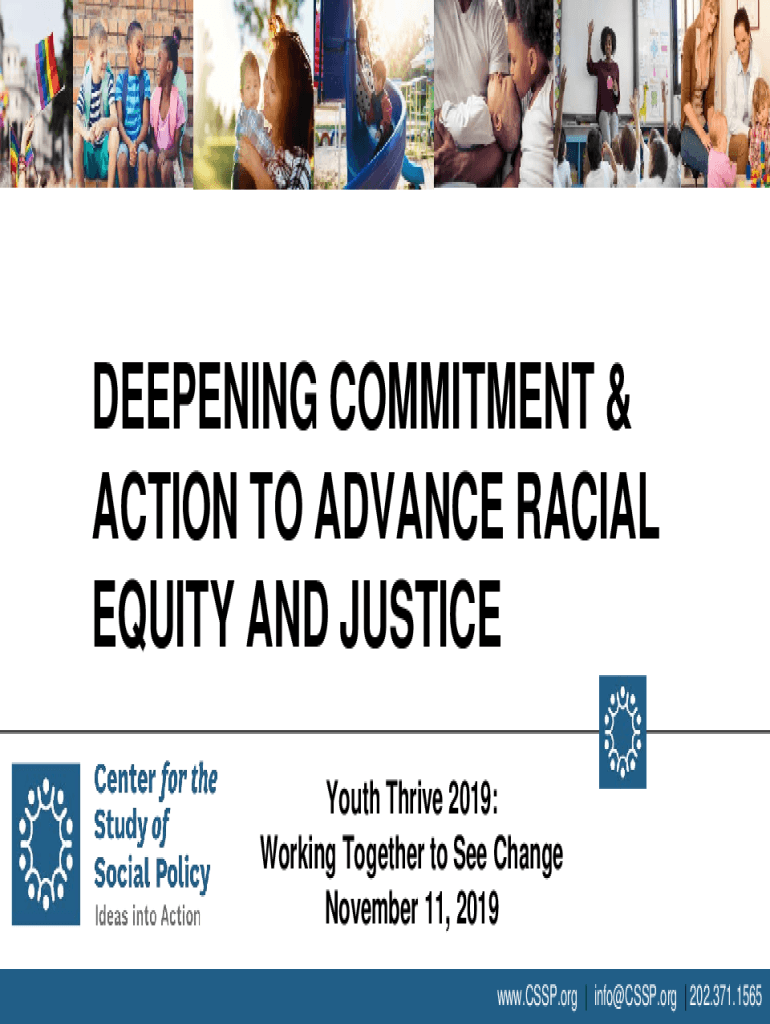 DEEPENING COMMITMENT & ACTION TO ADVANCE RACIAL EQUITY AND JUSTICE Youth Thrive 2019: Working Together to See Change November 11, 2019 www.CSSP.org | info@CSSP.org | 202.371.1565Purpose and Results