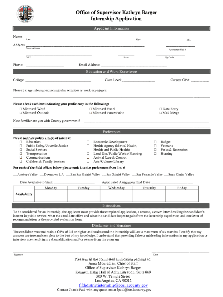 Office of Supervisor Kathryn Larger Internship Information Applicant InformationSummary The internship program in Supervisor Barges office offers a Hanson opportunity to learn about vital issues and