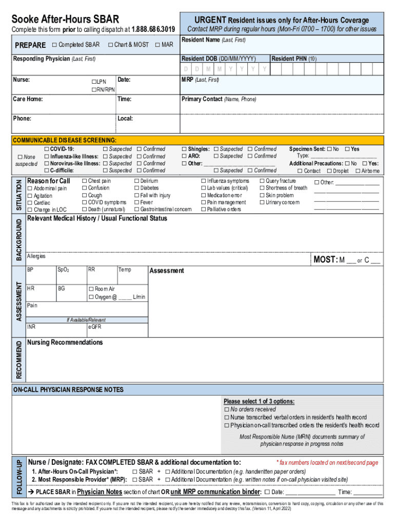 Spoke Afternoons SARGENT Resident issues only for Afternoons CoverageComplete this form prior to calling dispatch at 1.888.686.3019PREPARE Completed STAR Chart & MOST Corresponding Physician (Last,