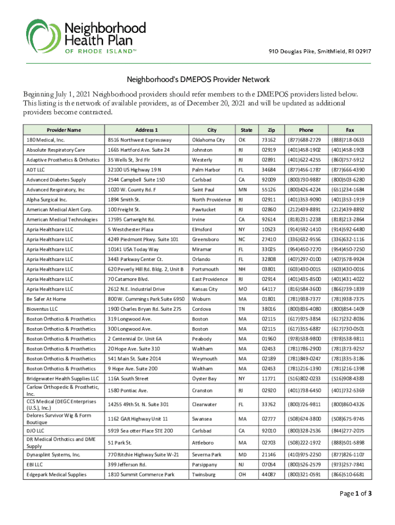 Get the free Neighborhood's DMEPOS Provider Network Beginning July 1 ...