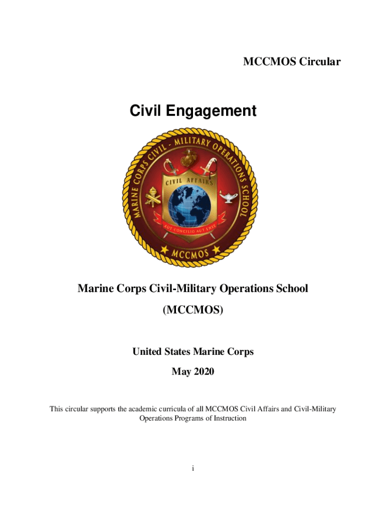MC CMOS CircularCivil Engagement Marine Corps CivilMilitary Operations School (MC CMOS)United States Marine Corps May 2020This circular supports the academic curricula of all MC CMOS Civil Affairs