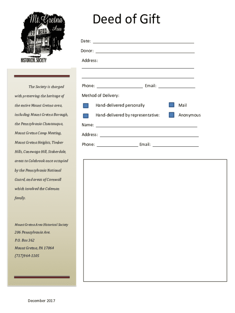 Get the free Deed of Gift - Mount Gretna Area Historical Society