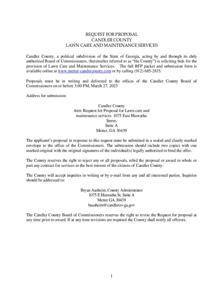 Get the free Request for Proposal Candler County Lawn Care and Maintenance ...