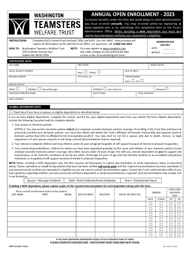 ANNUALOPENENROLLMENT2023ToreceivebenefitsunderthisPlanandavoiddelaysinclaimadministration, you must reenroll annually. You may reenroll online by registering at www.nwadmin.com or by submitting this