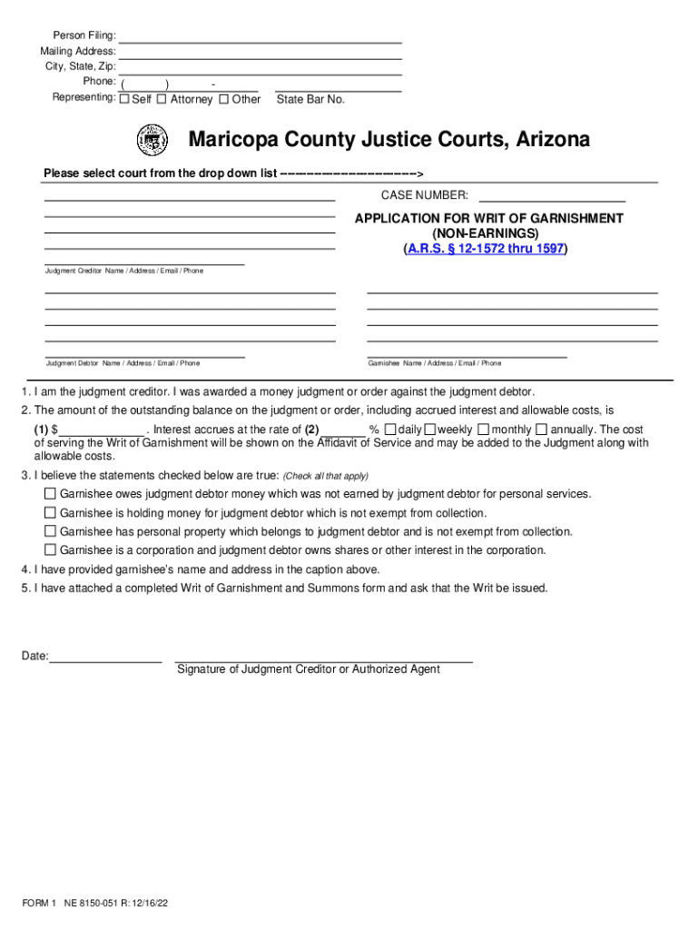 Get the free OBTAIN A WRIT OF GARNISHMENT (Non Earnings) Maricopa ... - justicecourts maricopa