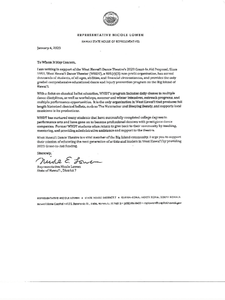 HAWAII STATE HOUSE OF REPRESENTATIVES January 4, 2023To Whom It May Concern,