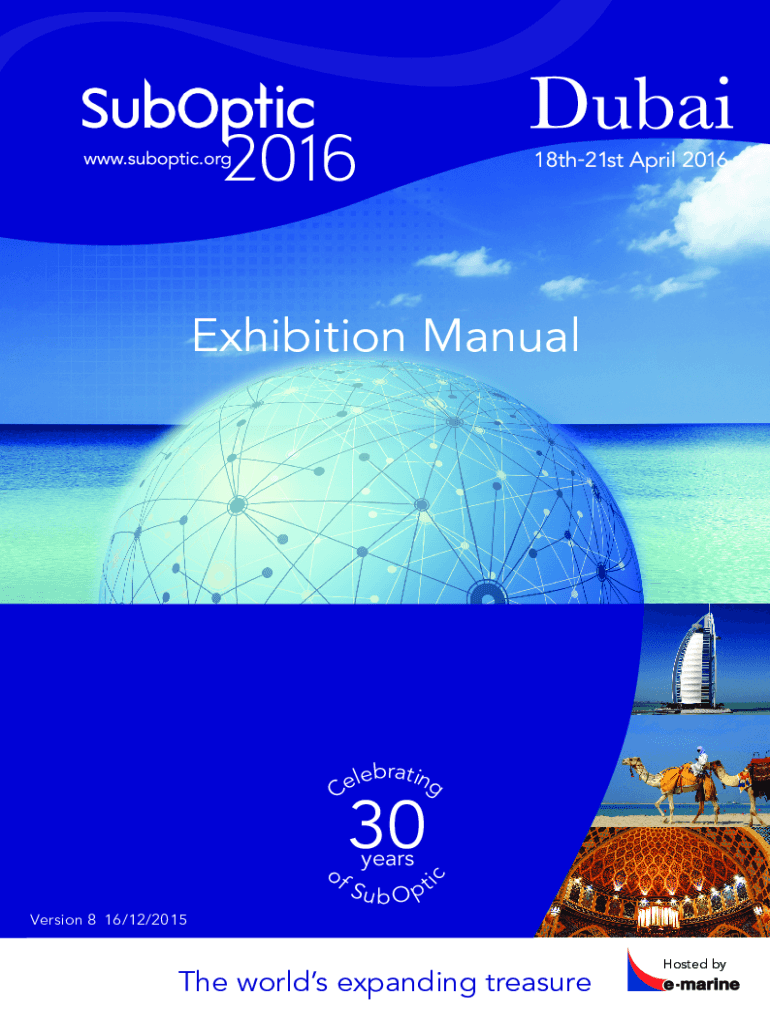 Exhibition Manuallebrating e C30 reversion 8 16/12/2015coi FS u b O the worlds expanding treasureHosted contents IntroductionPAGEGeneral Information02Key Contacts04Your Standout Stand at SubOptic05Custom