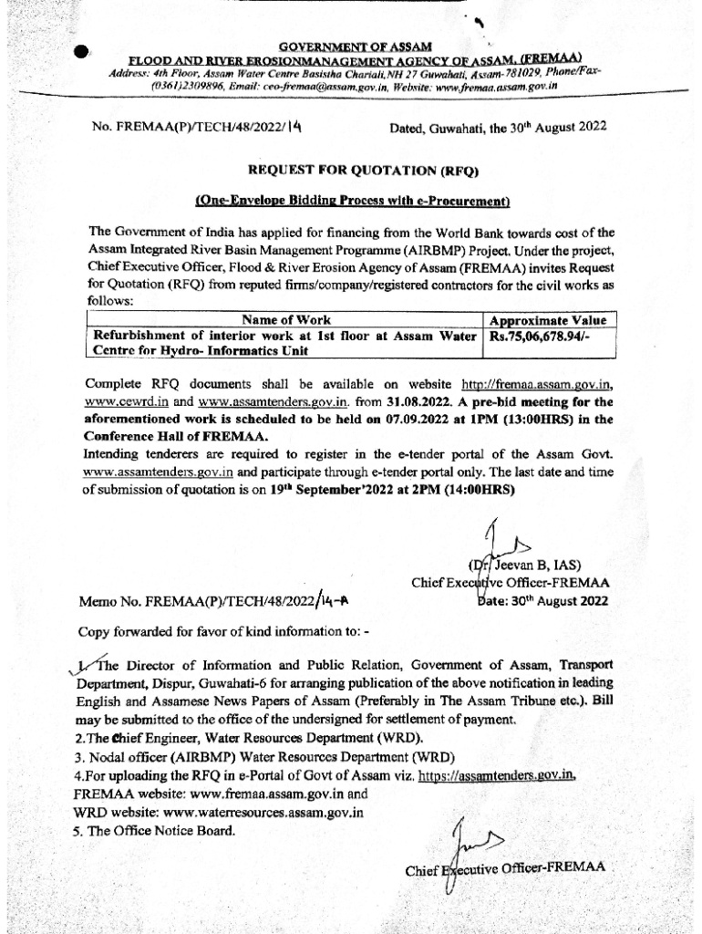 Instructions to Bidders SECTION A 1. Scope of Workload and River Erosion Management Agency of Assam invites quotations for the construction of works as detailed in the table given below: SL. Brief