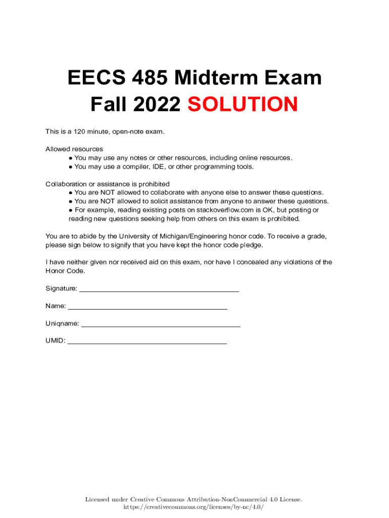 EEC 485 Midterm Exam Fall 2022 SOLUTION This is a 120 minute, open note exam. Allowed resources You may use any notes or other resources, including online resources. You may use a compiler, IDE, or