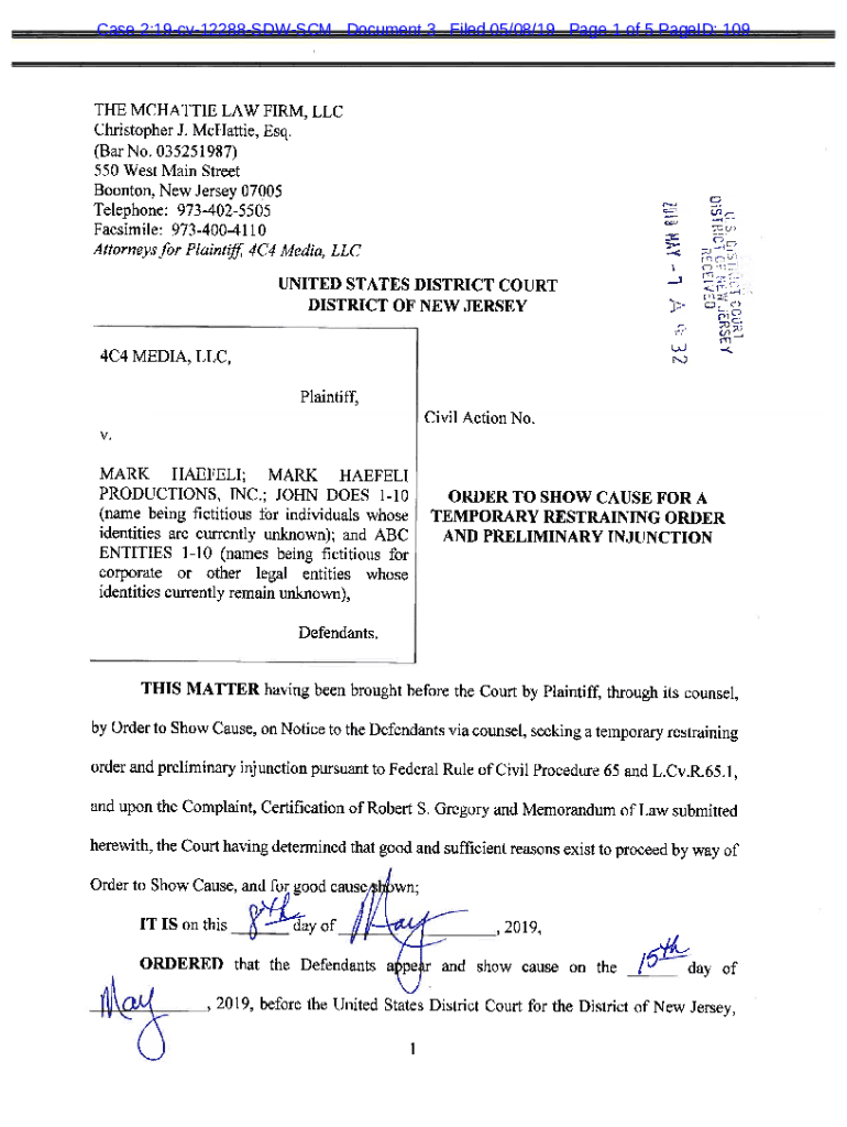 Case 2:19cv12288SDWSCM Document 3 Filed 05/08/19-Page 1 of 5 Paged: 109THE MATTIE LAW FIRM, LLC