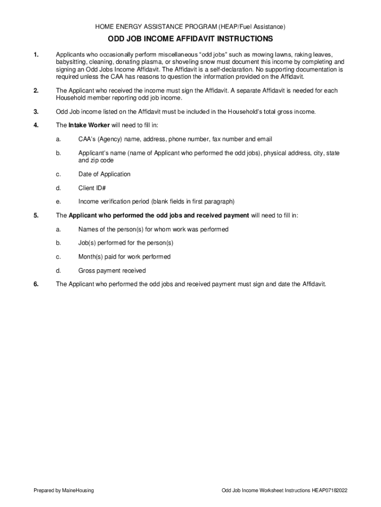 HOME ENERGY ASSISTANCE PROGRAM (HEAP/Fuel Assistance)ODD JOB INCOME AFFIDAVIT INSTRUCTIONS 1. Applicants who occasionally perform miscellaneous odd jobs such as mowing lawns, raking leaves, babysitting,