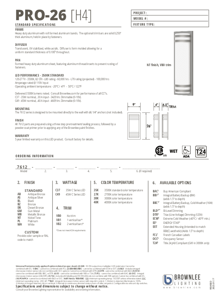 PRO26 [H₄]Nickel Tone (NT) trim finish7612 LED The 7600 series (Models: 7600/01/02/04/10/12/14/16) is available in a variety of sizes and lumen packages, making it highly versatile for exterior