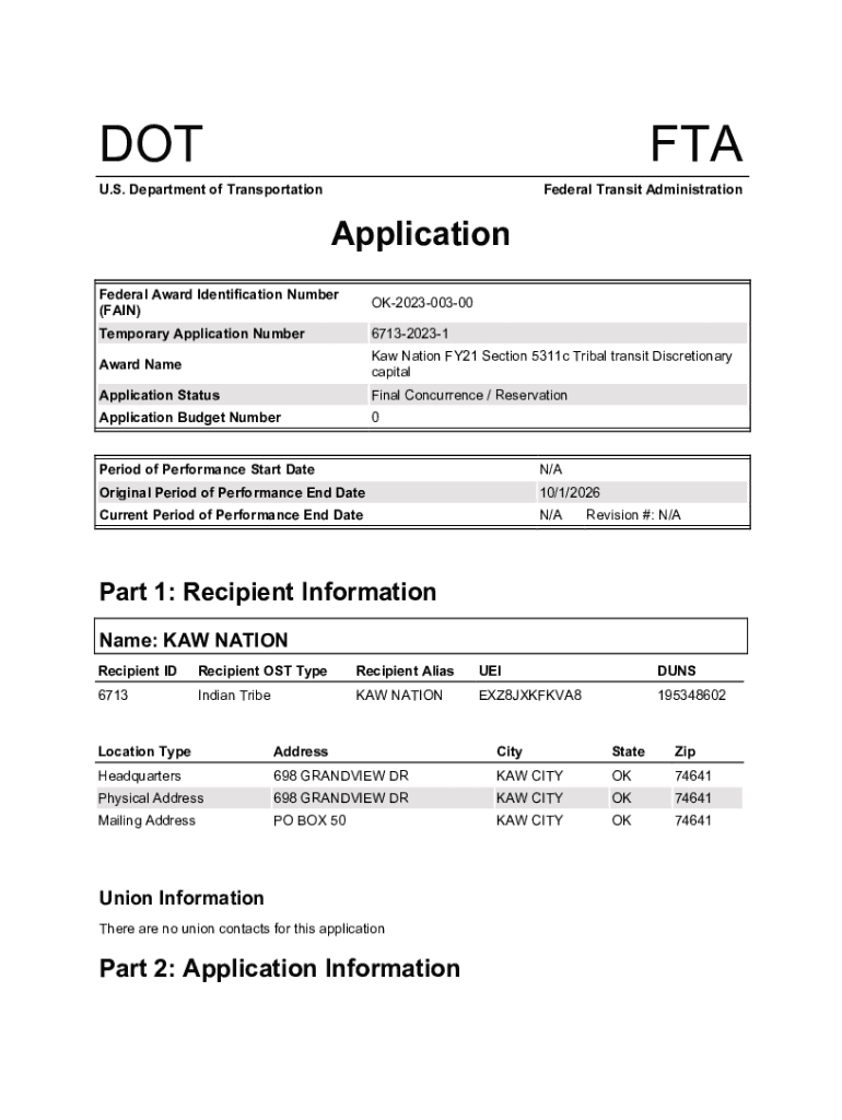 DOTTED. S. Department of Transportation Federal Transit AdministrationApplication