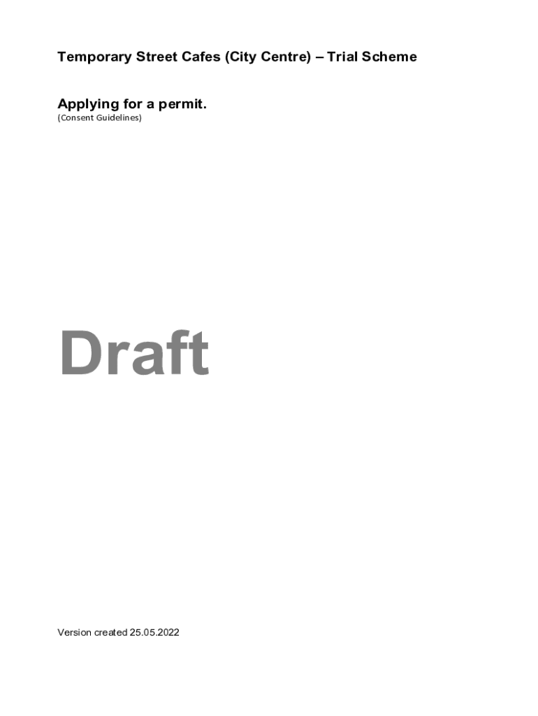 Temporary Street Cafés (City Center) Trial Scheme Applying for a permit. (Consent Guidelines)DraftVersion created 25.05.2022Introduction Glasgow City Council is keen to see the city center thrive
