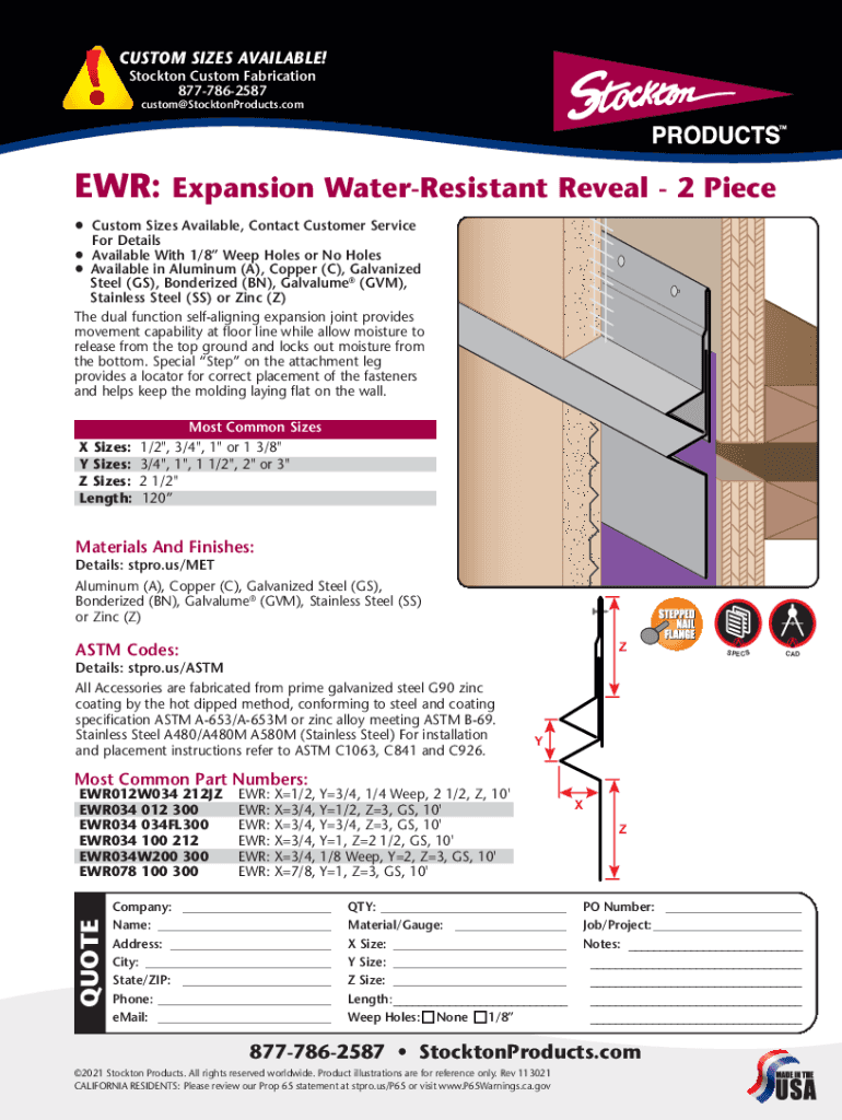 custom@StocktonProducts.comEWR: Expansion WaterResistant Reveal 2 Piece