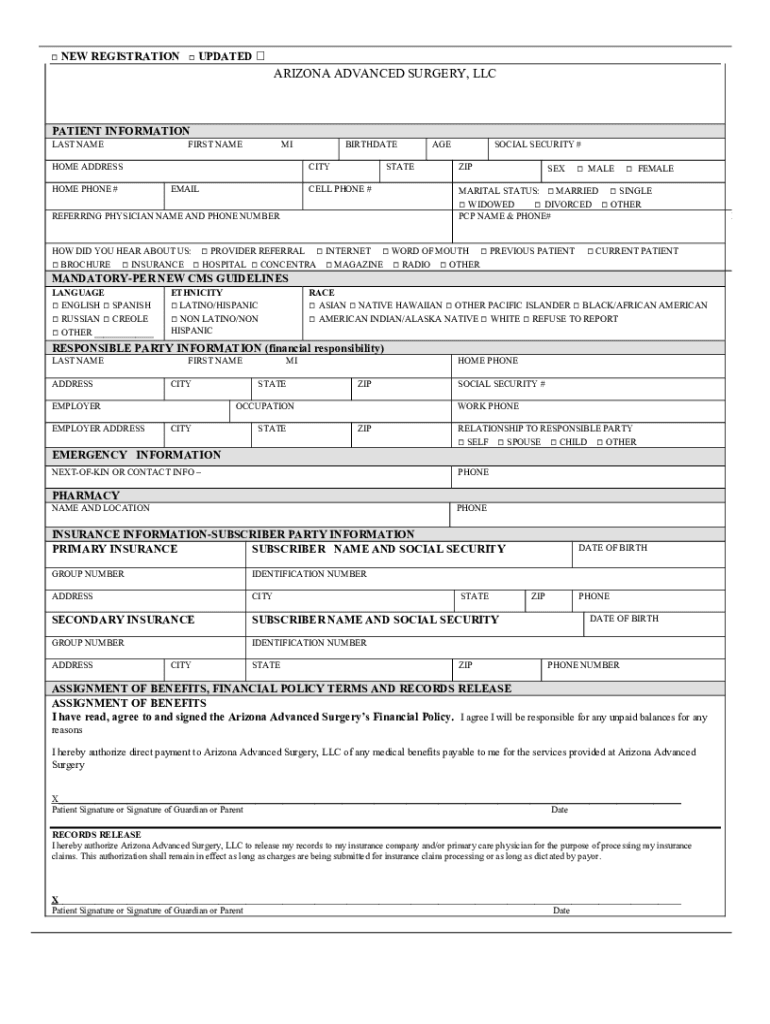 NEW REGISTRATION UPDATED ARIZONA ADVANCED SURGERY, PATIENT INFORMATION