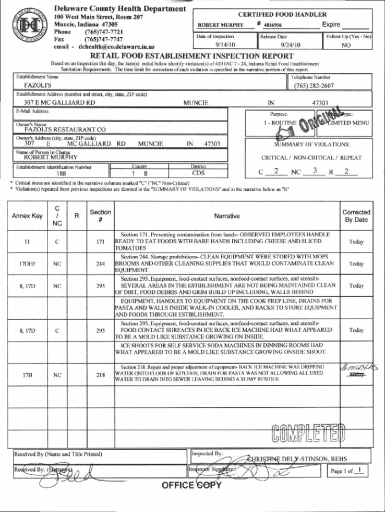 Delaware County Health DepartmentCERTIFIED FOOD HANDLER100 West Main Street, Room 207 Muncie, Indiana 47305 Phone(765)7477721 Fax(765)7477747 email dchealth@co.delaware.in.usROBERT Morphodite of Inspection#Expire4816956Follow