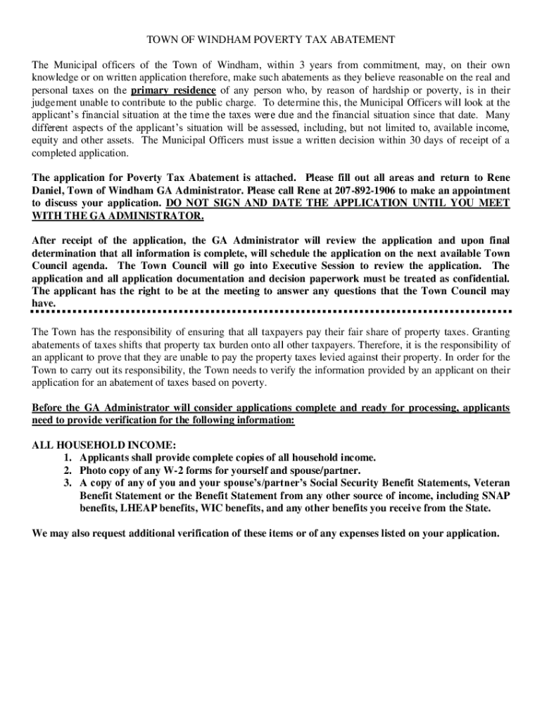 Get the free TOWN OF WINDHAM POVERTY TAX ABATEMENT The Municipal ...