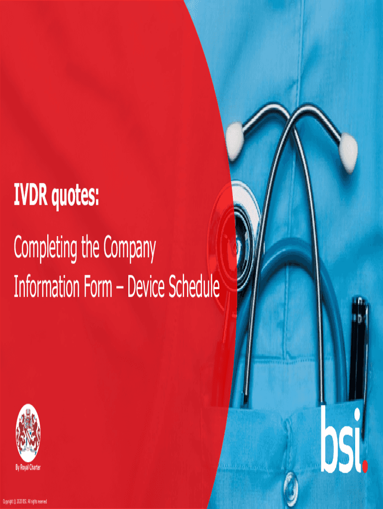 IDR quotes: Completing the Company Information Form Device Schedule1 Copyright 2020 2019 BSI. All rights reservedly do we need a Device Schedule? The Device Schedule provides BSI with the information