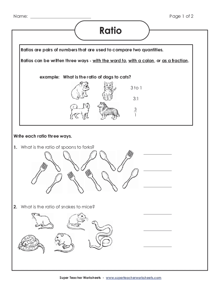 Get the free Name: Page 1 of 2 Ratios are pairs of numbers that are used to ...