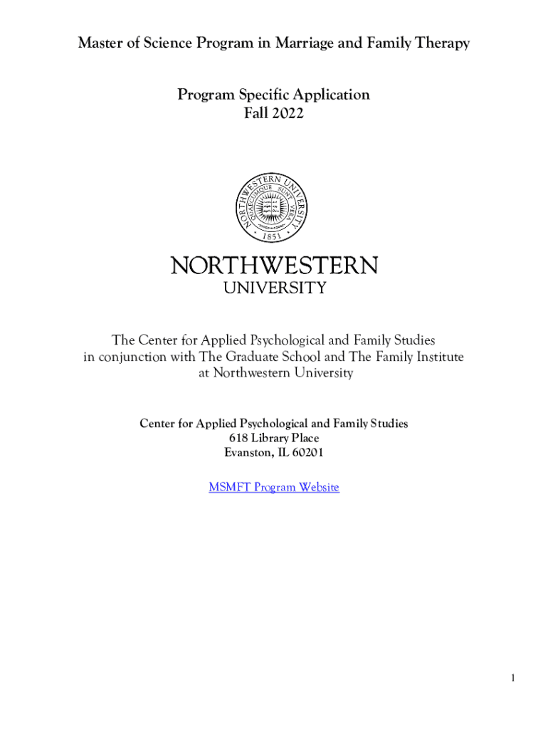 Master of Science Program in Marriage and Family Therapy Program Specific Application Fall 2022The Center for Applied Psychological and Family Studies in conjunction with The Graduate School and The