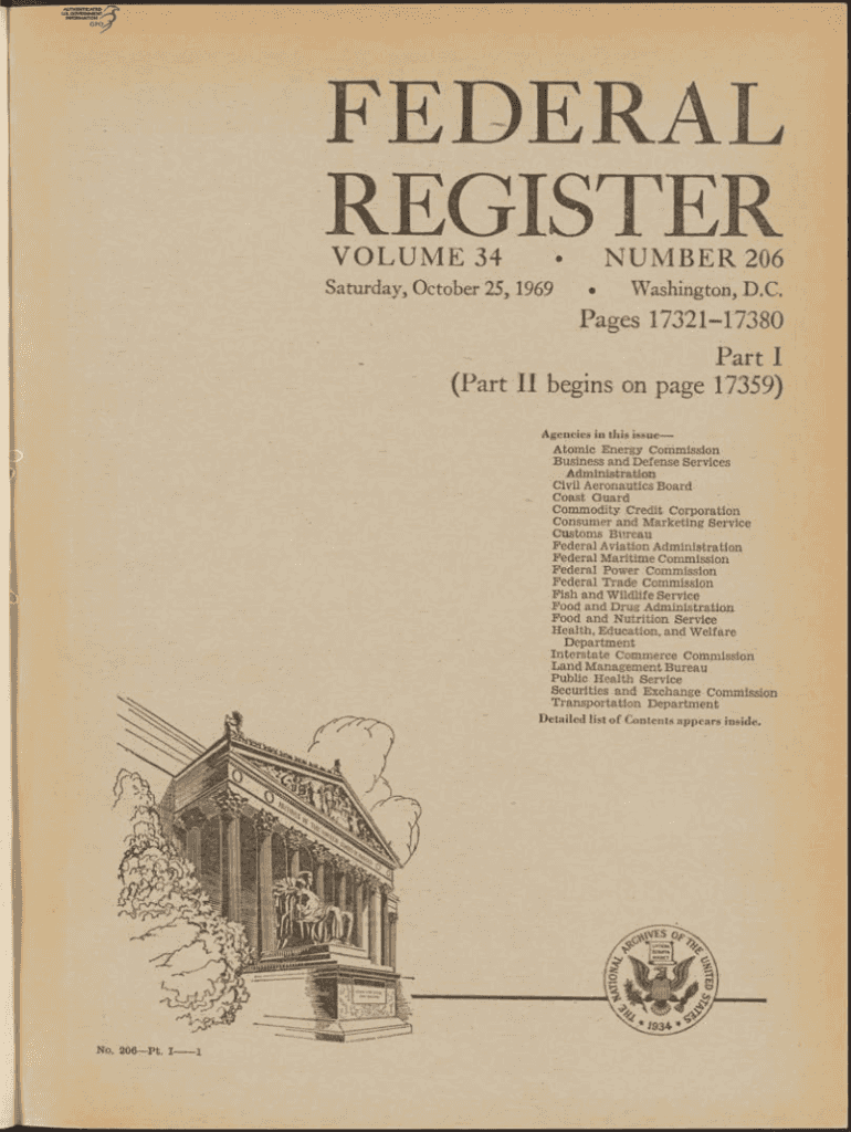 FEDERAL REGISTER VOLUME 34Saturday, October 25, 1969NUMBER 206Washington, D.C. Pages 1732117380 P art I (P art II begins on page 17359) Agencies in this subatomic Energy Commission Business and Defense