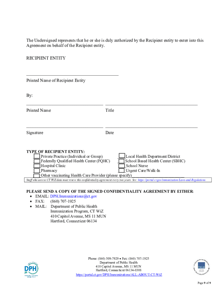 CT Wiz CONFIDENTIALITY AGREEMENT WHEREAS, the Recipient entity identified below desires to obtain, within the scope of its authority, certain confidential information from the State of Connecticut