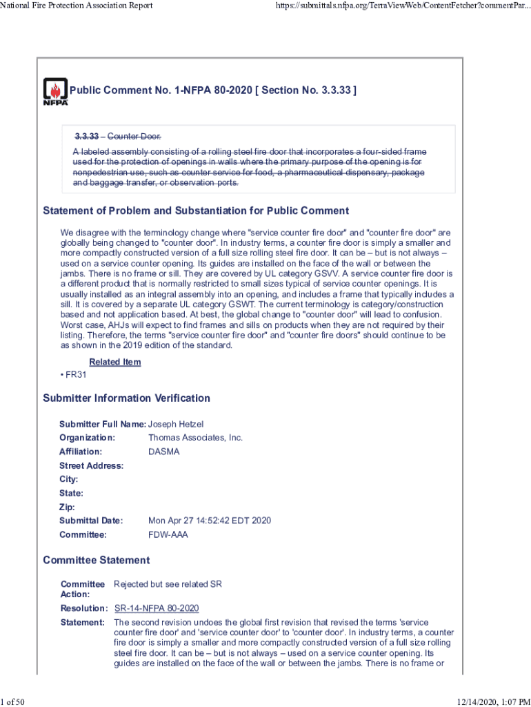 National Fire Protection Association Reporthttps://submittals.nfpa.org/TerraViewWeb/ContentFetcher?commentPar... Public Comment No. 1NFPA 802020 [Section No. 3.3.33]3.3.33 Counter Door. A labeled