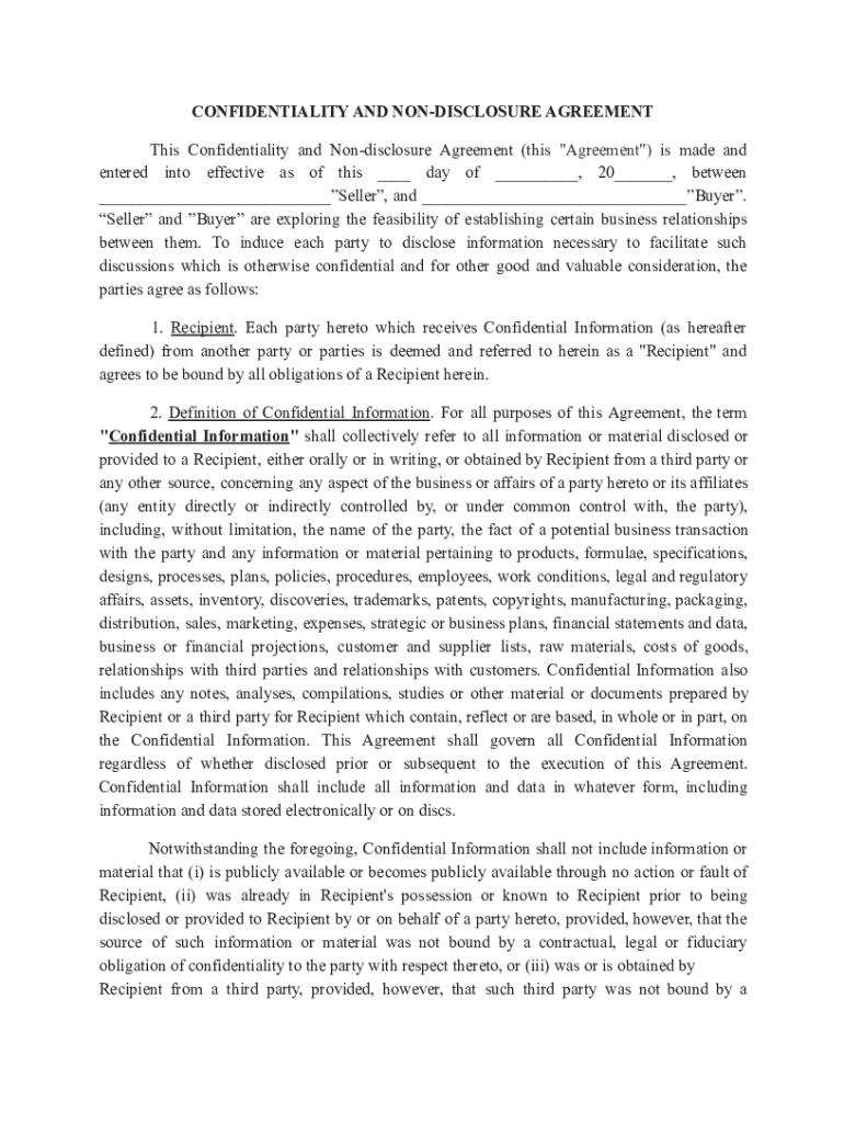 Get the free Non-Disclosure Agreement Template (DOC) - Pace University