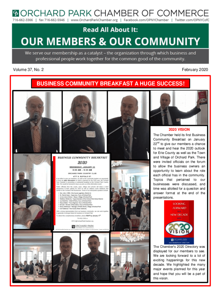 Volume 37, No. 2February 2020BUSINESS COMMUNITY BREAKFAST A HUGE SUCCESS! BUSINESS COMMUNITY BREAKFAST A HUGE SUCCESS!2020 VISION The Chamber held its first Business Community Breakfast on January