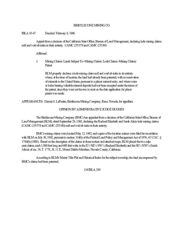 Get the free bristlecone mining co. - Office of Hearing and Appeals