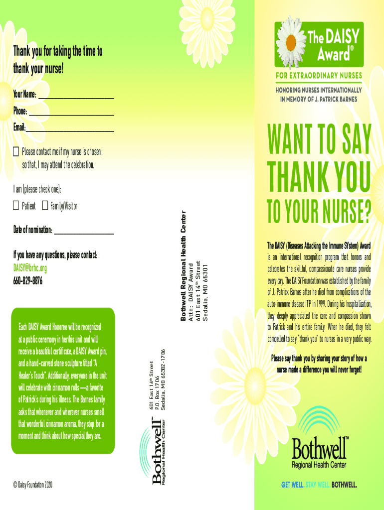 Thank you for taking the time to thank your nurse! Your Name:___ Phone:___WANT TO SAY THANK Email:___Please contact me if my nurse is chosen; so that, I may attend the celebration. I am (please check