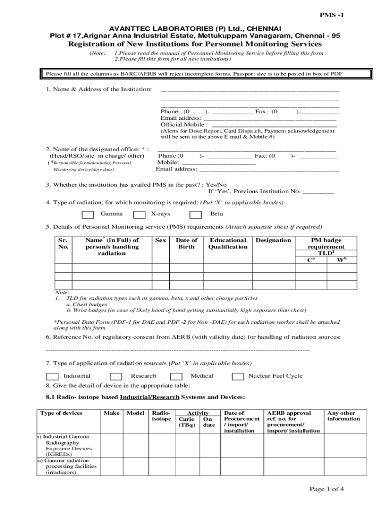 PMS 1 VATTED LABORATORIES (P) Ltd., CHENNAI Plot # 17,Aligner Anna Industrial Estate, Mettukuppam Anagram, Chennai 95Registration of New Institutions for Personnel Monitoring Services (Note:1. Please