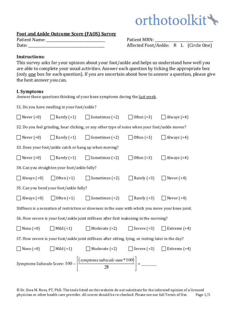Get the free Validation of the foot and ankle outcome score for ...