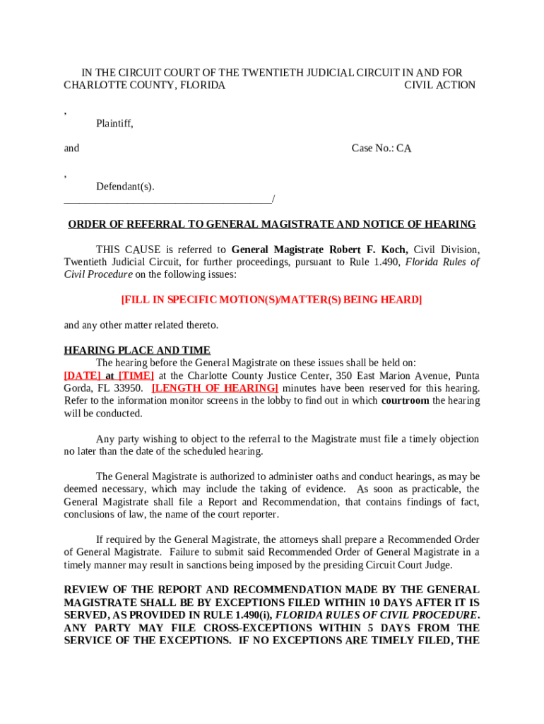 Template Florida Family Law Rules of Procedure 12.920(c), ... instructions